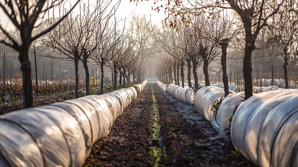 En áreas donde las heladas son muy intensas, envolver los troncos de los árboles jóvenes con arpillera o material aislante puede prevenir grietas y daños en la corteza.