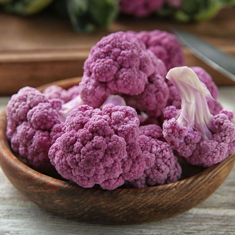 Le chou-fleur Di Sicilia Violetto se distingue par sa couleur violette profonde caractéristique et sa capacité à pousser sous différents climats. Il est originaire de la région de Sicile, où il est cultivé depuis des siècles. Sa couleur n’est pas seulement unique d’un point de vue esthétique, elle indique également la présence d’anthocyanes, des composés aux propriétés antioxydantes.