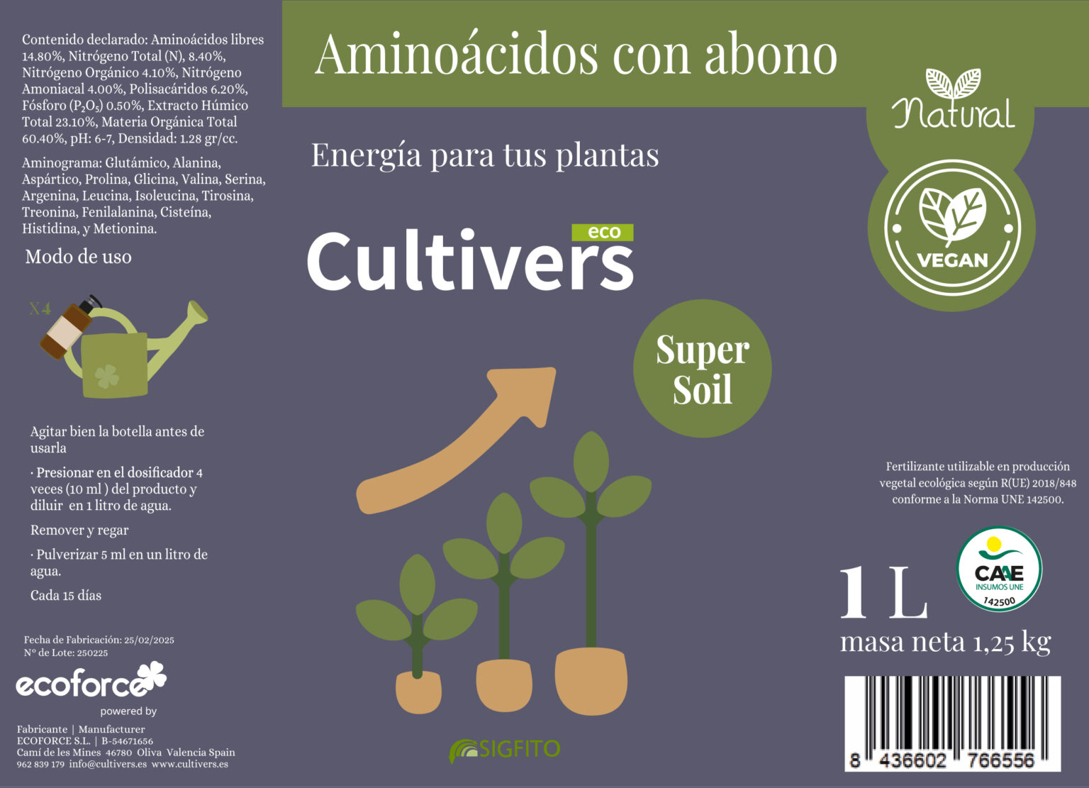CULTIVERS offre un fertilizzante organico certificato CAAE, ideale per chi desidera una soluzione naturale che combini aminoacidi e fertilizzanti per piante da interno. Grazie all’esclusivo processo di fermentazione batterica, il prodotto include aminoacidi, betaine, auxine, vitamine, enzimi, proteine e carboidrati che favoriscono uno sviluppo equilibrato e sano delle piante.