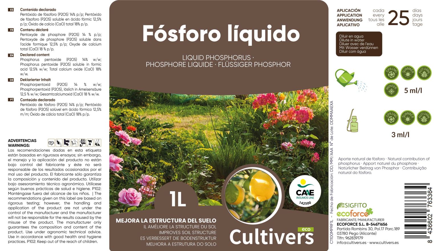• 🌸 Promueve una Floración y Fructificación Abundante: Con CULTIVERS Fósforo Ecológico Líquido, las plantas reciben el fósforo necesario para una floración más abundante y frutos de mejor calidad. Perfecto para huertos, jardines y cultivos extensivos que buscan maximizar su rendimiento de manera ecológica