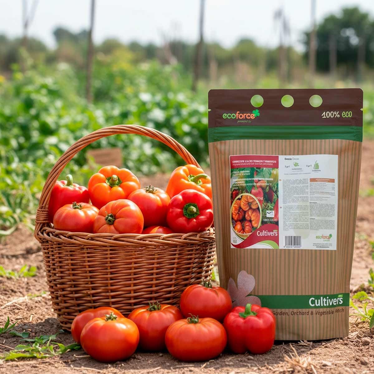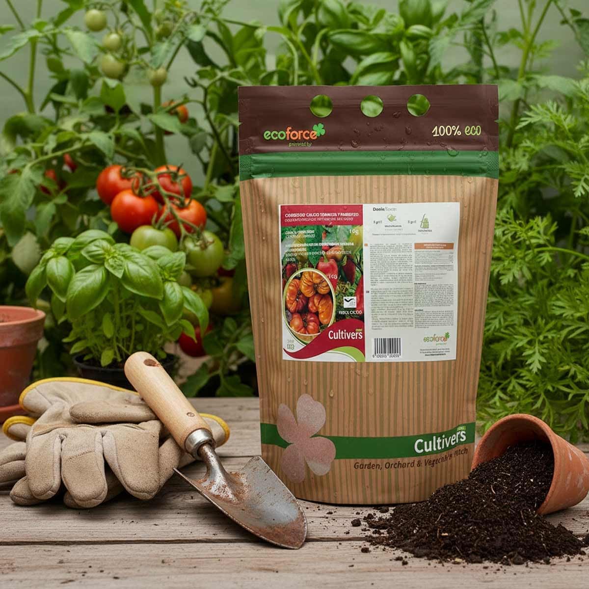 Fertilizante ecológico de calcio de acción inmediata para tomates y pimientos.
