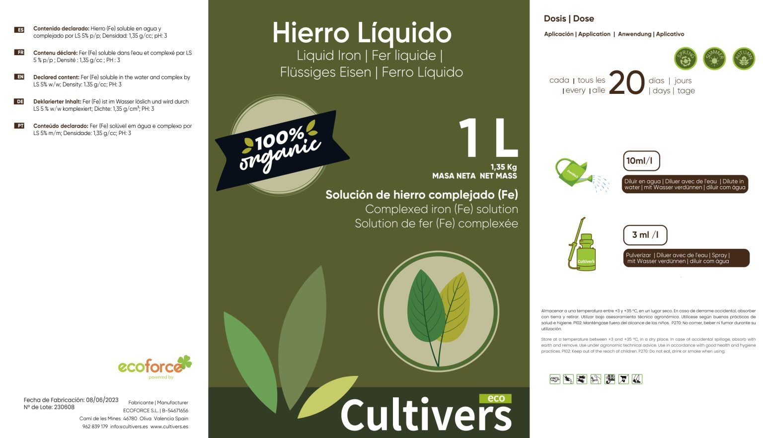 - 🌱 Revitaliza tus plantas con CULTIVERS Hierro Líquido: Este abono de alta calidad previene y corrige el amarillamiento de las hojas, asegurando un reverdecimiento visible y un crecimiento saludable en plantas ornamentales, hortalizas y frutales