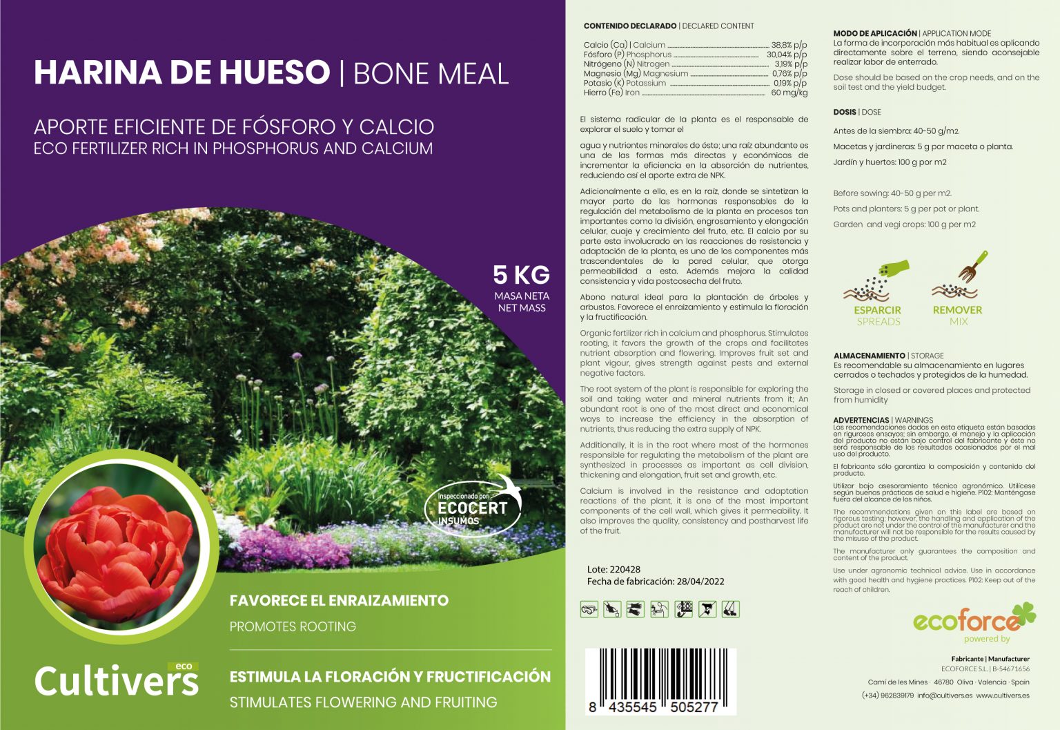 CULTIVADORES Farinha de ossos. Fertilizante orgânico para plantas. Fornece Fósforo e Cálcio às culturas. Fertilizante 100% natural Melhora a qualidade, consistência e vida pós-colheita dos frutos.